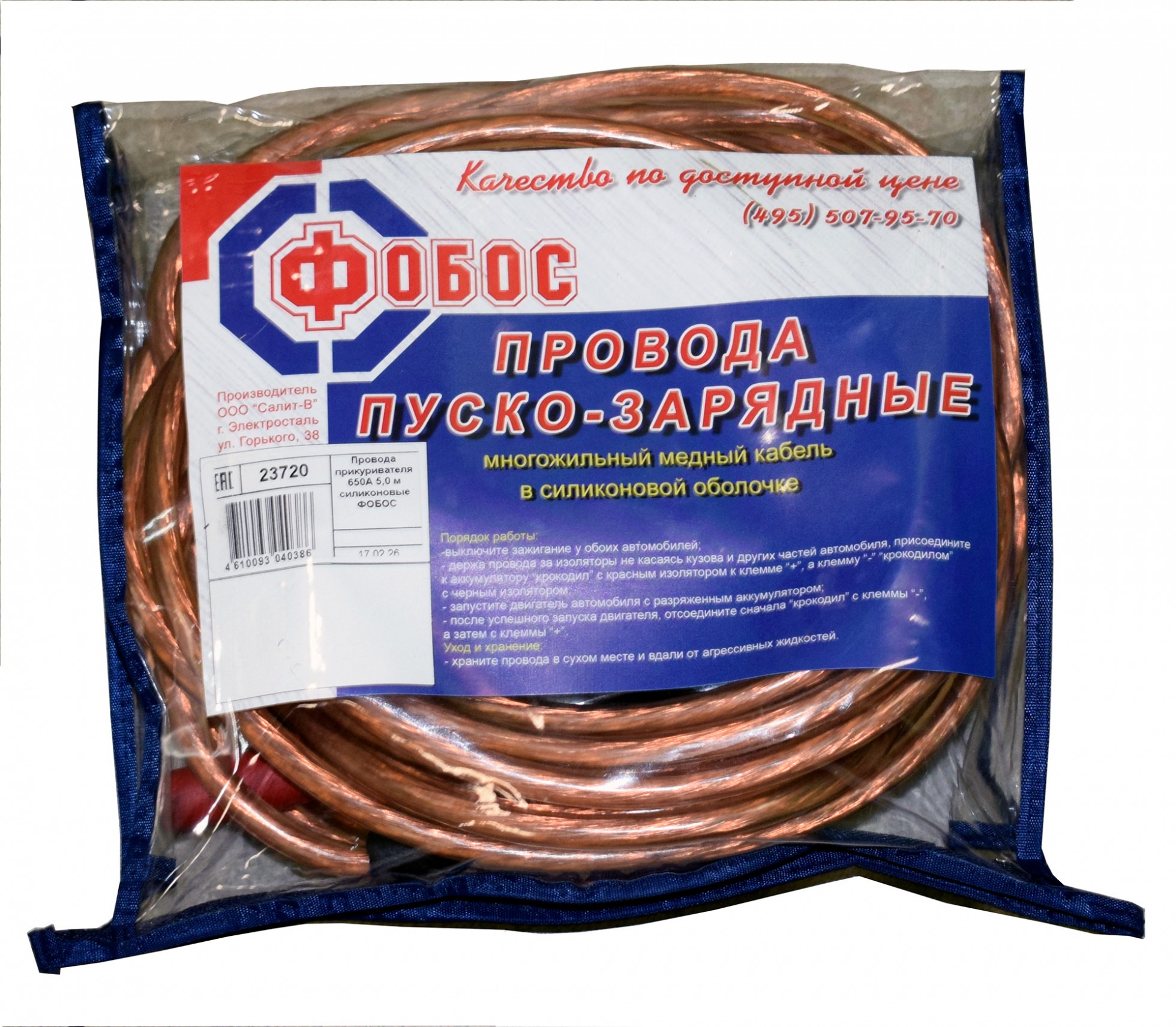 Провода прикуривателя 650А 5,0 м силиконовые ФОБОС